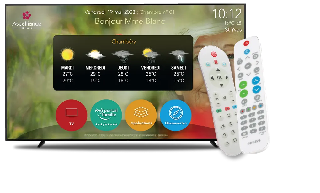 Grâce à une télécommande simplifiée et un écran intuitif, le résident peut accéder à :